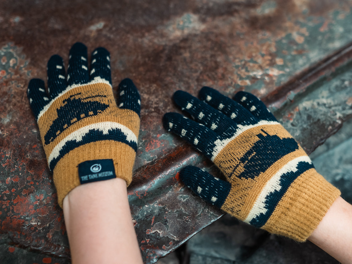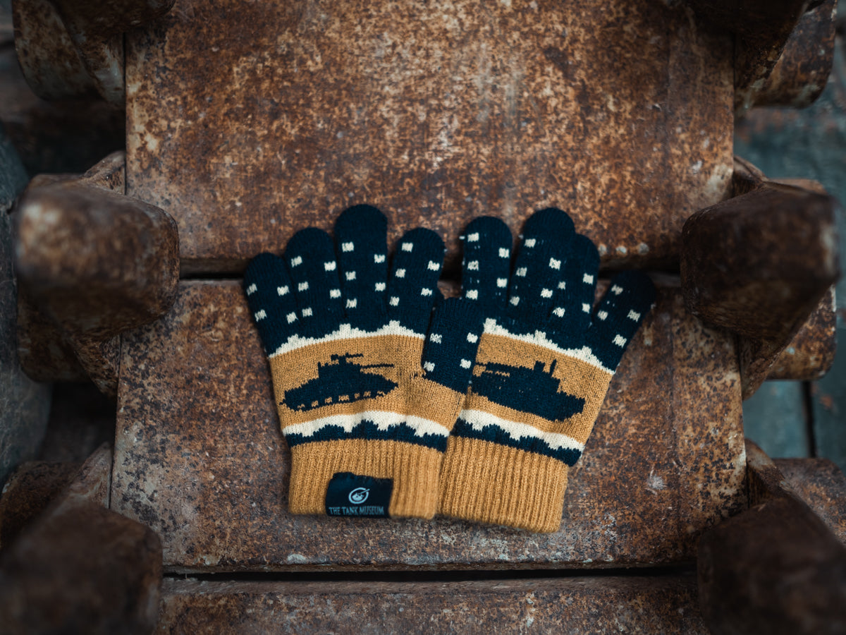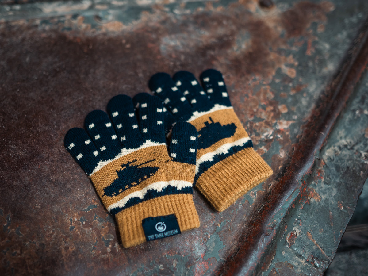 Keep your hands warm this winter with knitted Tank Museum themed gloves.