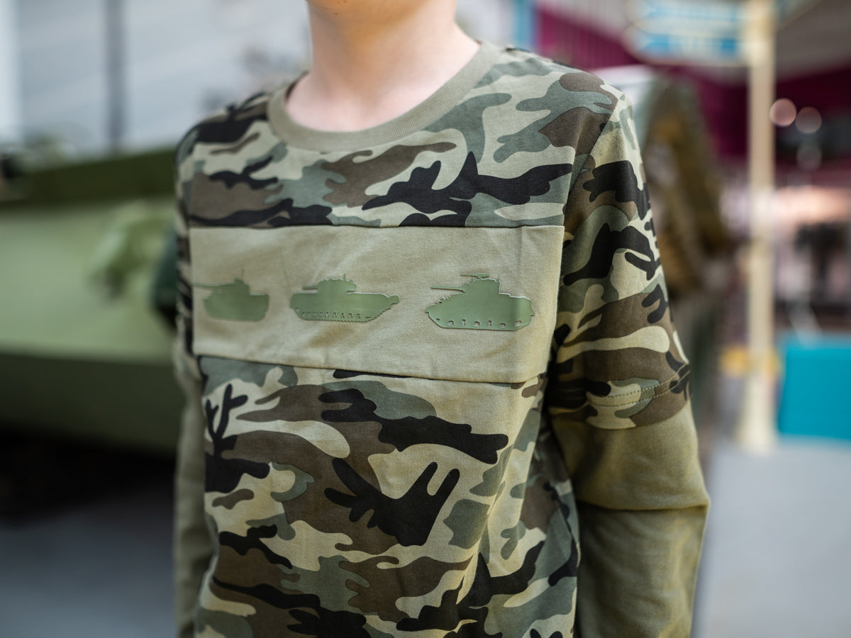 Complete your off-duty look with this camouflage long sleeve t-shirt! Featuring tanks on the chest and The Tank Museum logo on the sleeve.