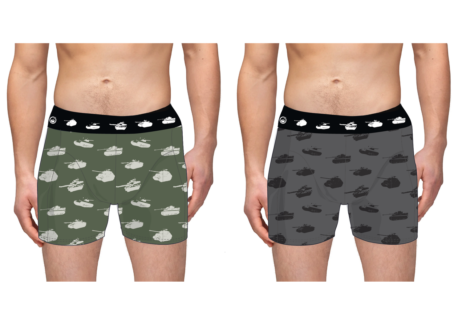 Check out these 2-pack close-fitting boxers, available in colours green and grey, and featuring our iconic tanks montage design.