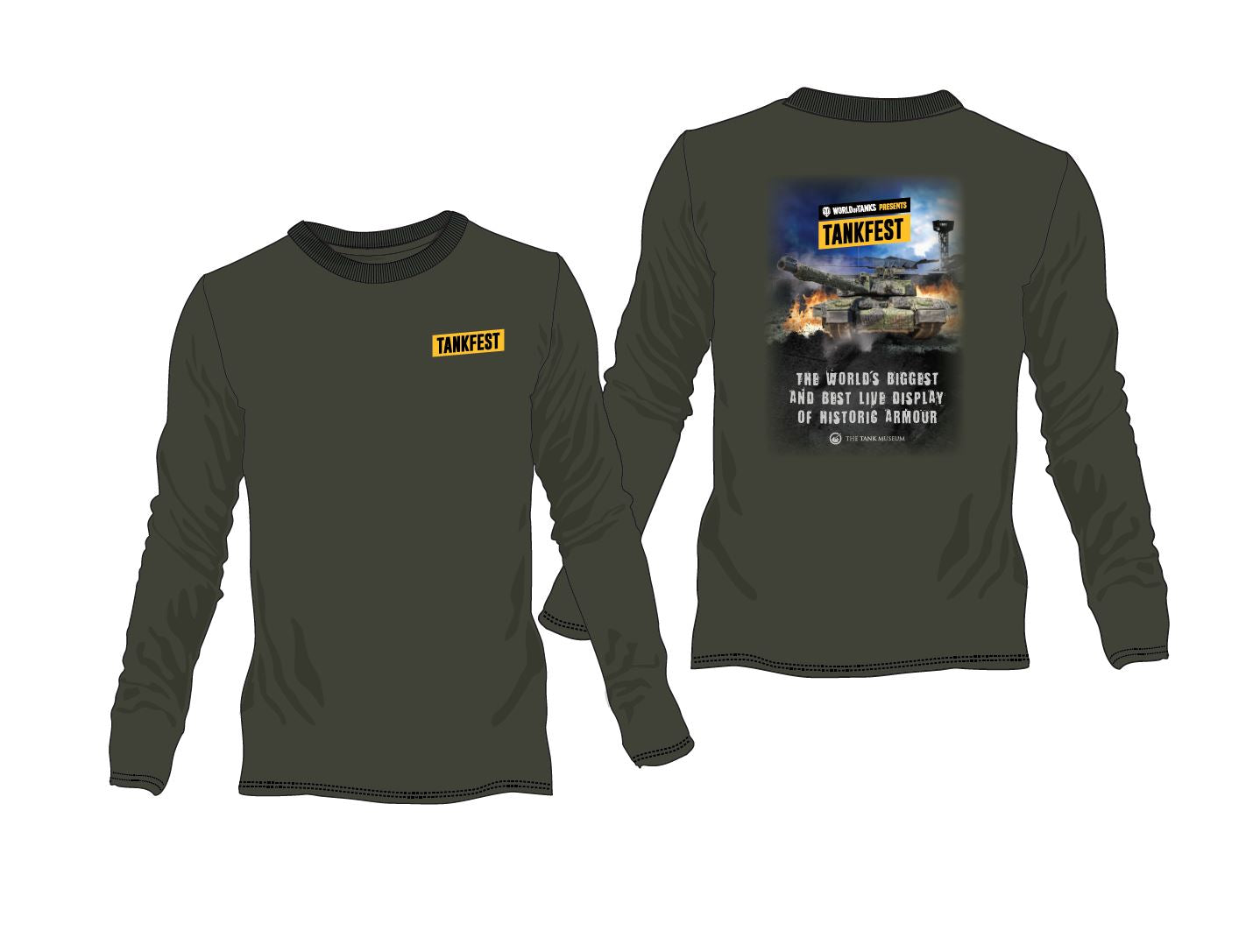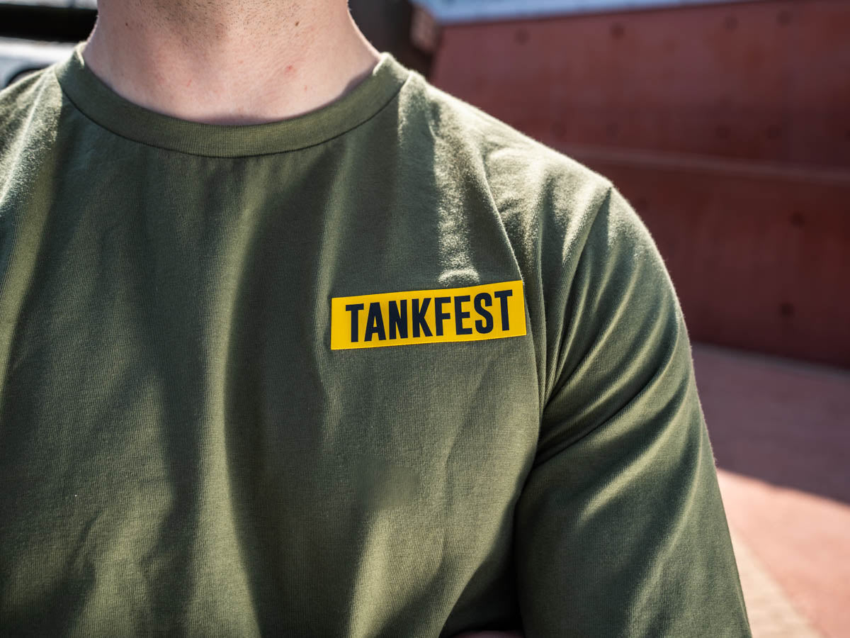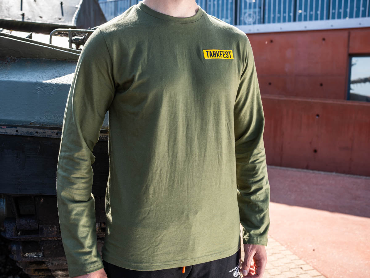 Complete your off-duty look with the new TANKFEST 2024 design on the front including the 2024 tank line-up in a festival-style, printed on a long sleeve khaki coloured t-shirt