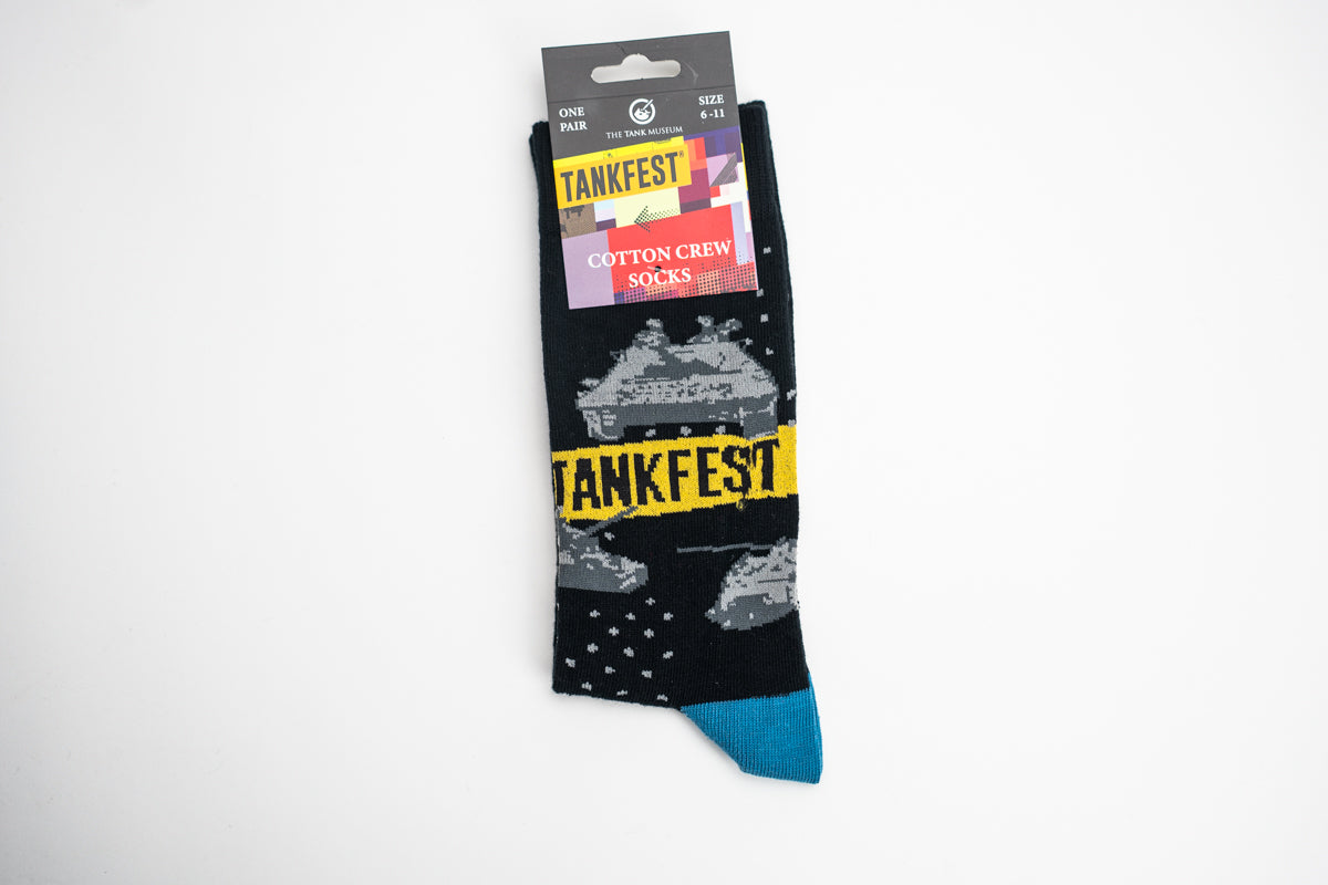 Made exclusively for the Tank Museum. This TANKFEST socks is brand new to us for 2025!  Featuring artwork from the official 2025 TANKFEST. These are the socks that you'd actually want to be given!