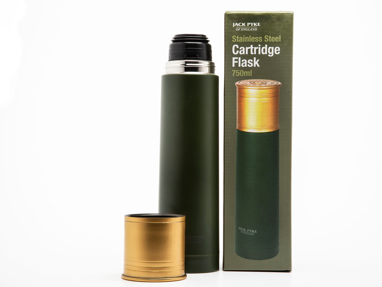 These cartridge-shaped stainless steel vacuum flask with a press-button pourer from Jack Pyke keeps your brew warm for hours.