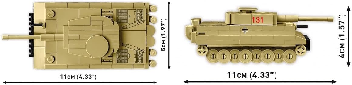 The mini model made of COBI construction blocks was designed on a scale of 1:72 and consists of 144 high-quality elements. When built the tank is 11cm long. Despite its compact size, the model retains all the most important features of its historical inspiration. There are German markings printed on the sides of the vehicle. Details such as service flaps and engine ventilation are also printed! The tank can be moved thanks to the mounted wheels. The tank's turret is also movable and can be rotated.