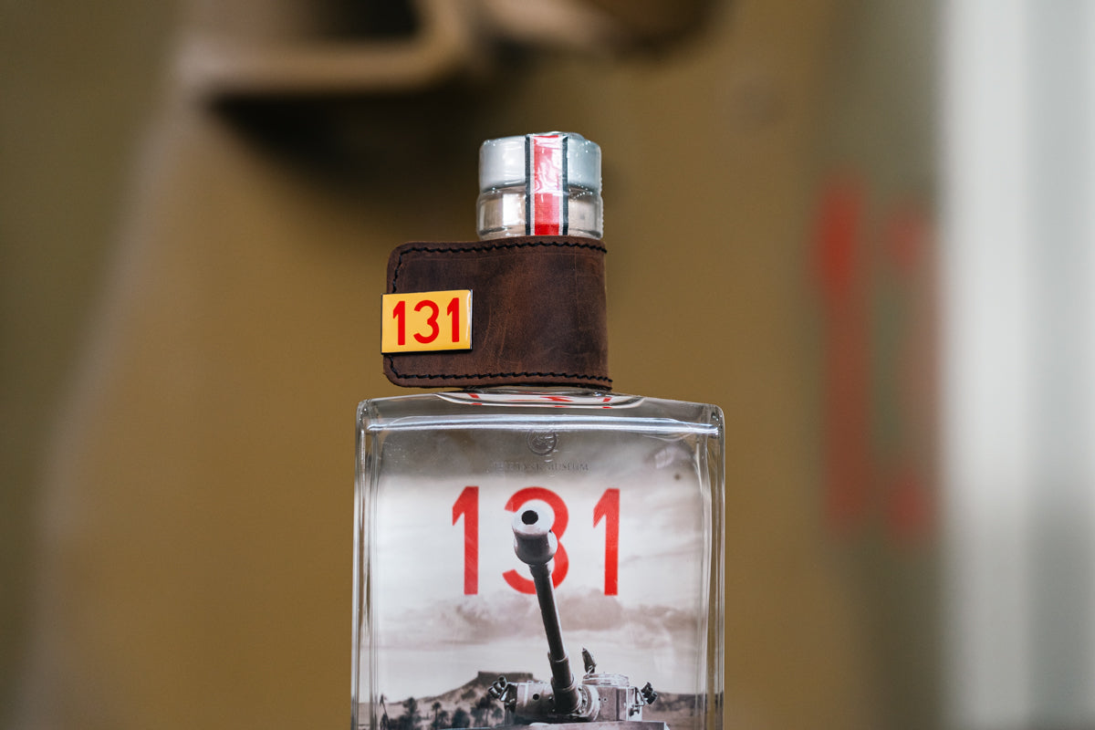 Each bottle is hand numbered, and designed for The Tank Museum by our partners Classic Racing Spirit and includes a leather neck collar and metal 131 pin badge, engraved with the unique number of the bottle.