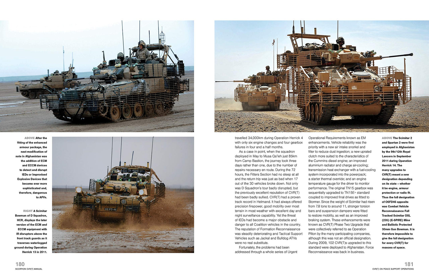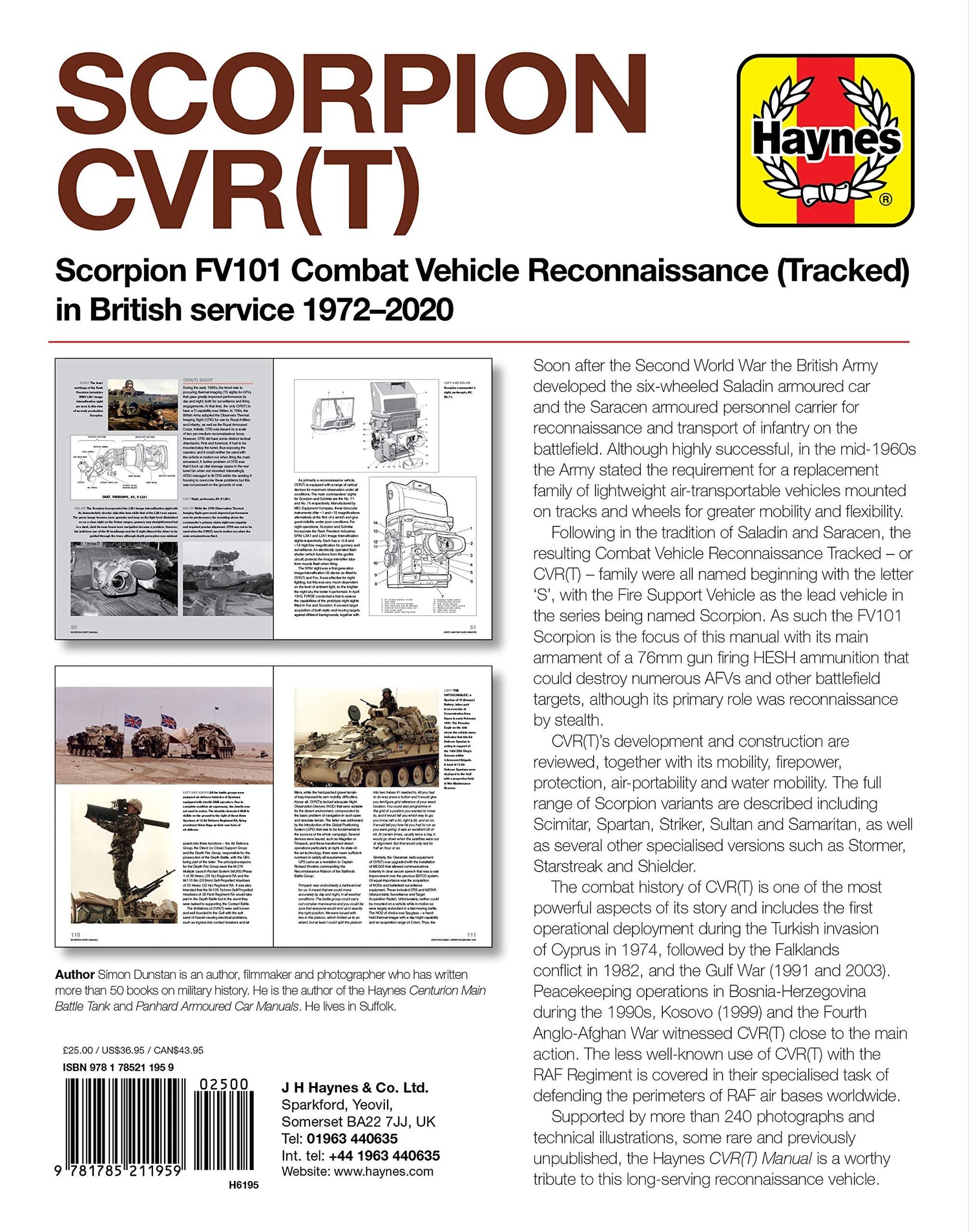The combat history of CVRT is one of the most powerful aspects of the Haynes CVRT Scorpion Manual and includes accounts of its first operational deployment during the Turkish invasion of Cyprus in 1974; the Falklands War in 1982; the Gulf War in 1991; Somalia in 1993 and the Fourth Anglo-Afghan War, including the testimony of the most highly decorated soldier in the British Army, Mick Flynn, who fought in CVRT from the Falklands to Afghanistan.
