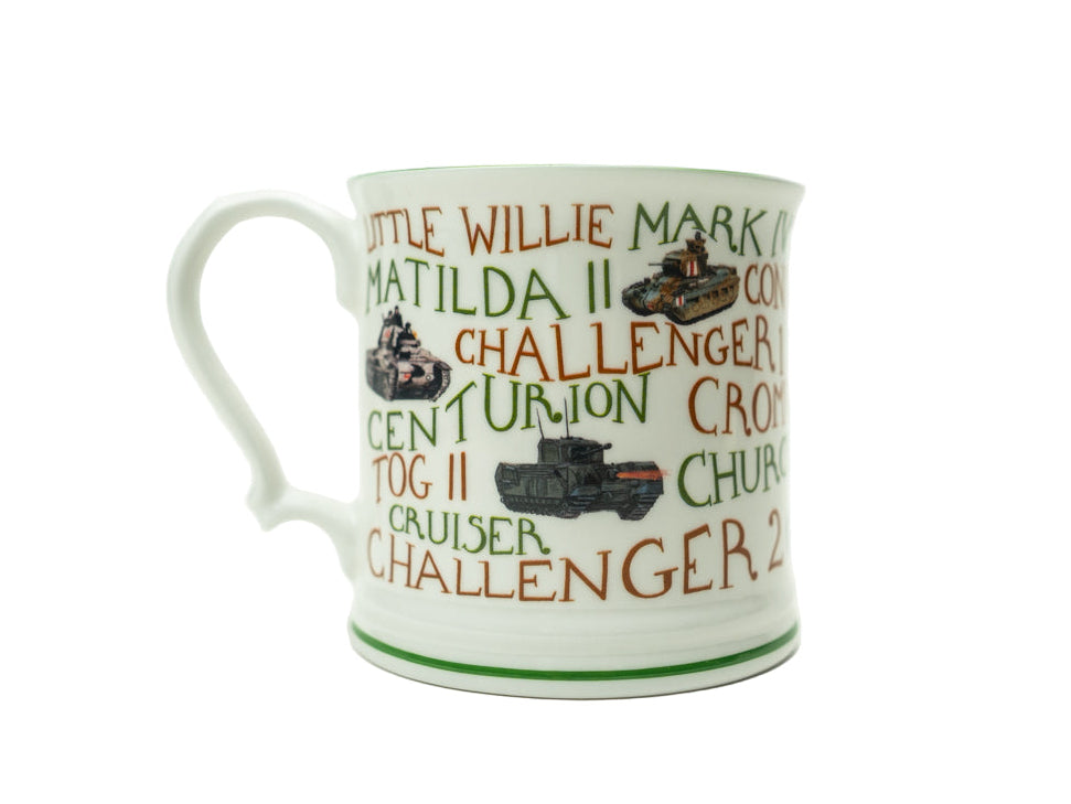 Enjoy your hot drink of choice with this handmade English Bone China mug. Featuring many popular tanks