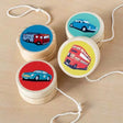 This traditional wooden yoyo comes in four different vehicle prints from our Road Trip collection.