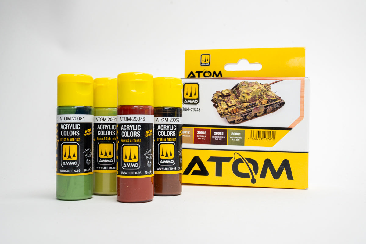 ATOM acrylic paint set with the colours specifically for painting the interiors of German vehicles from World War II. This set solves the issues of choosing the right colours for our models, saving valuable time.