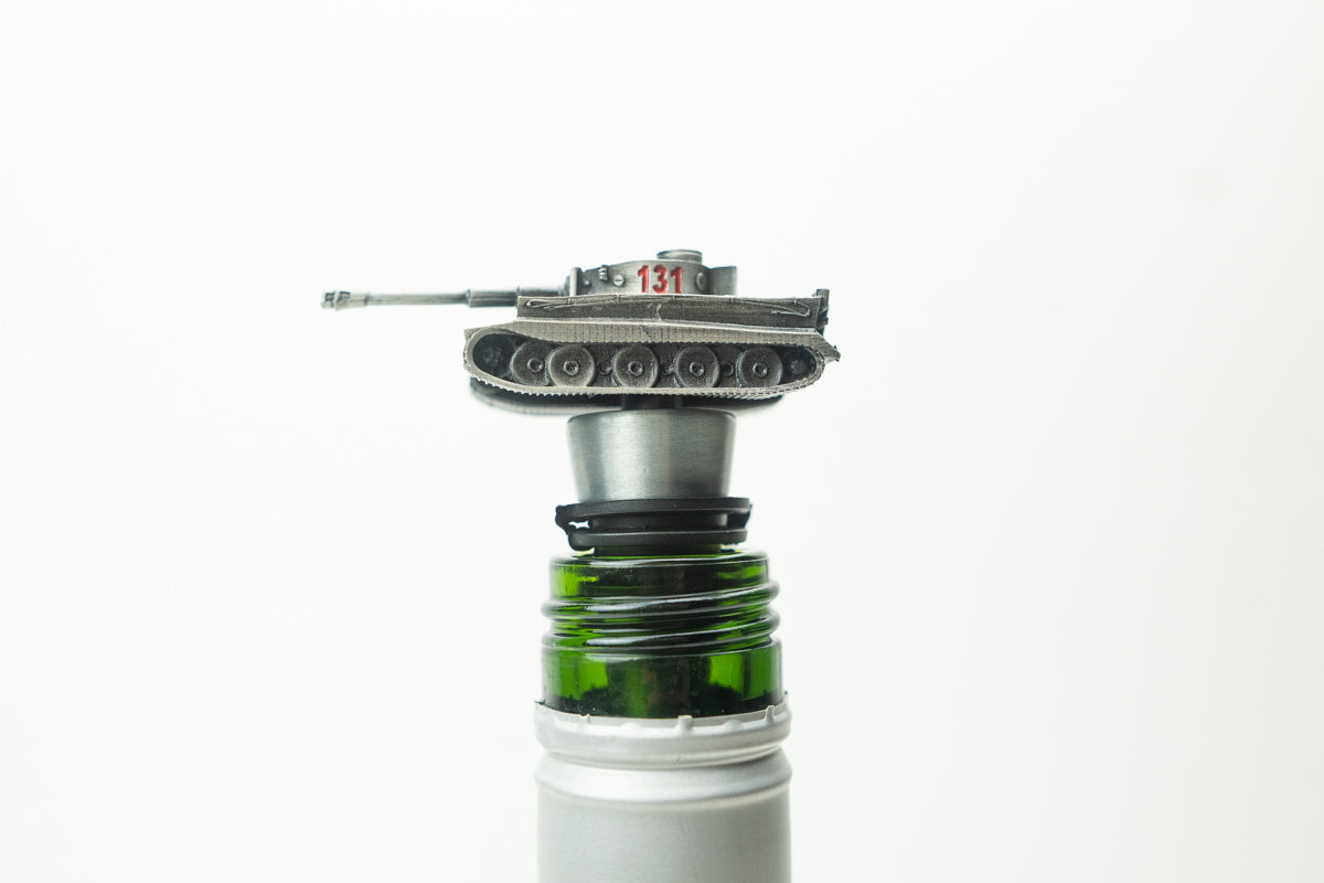 A perfect gift for any tank fan! This Tiger 131 bottle stopper will seal, preserve freshness/fizz, and prevent spills