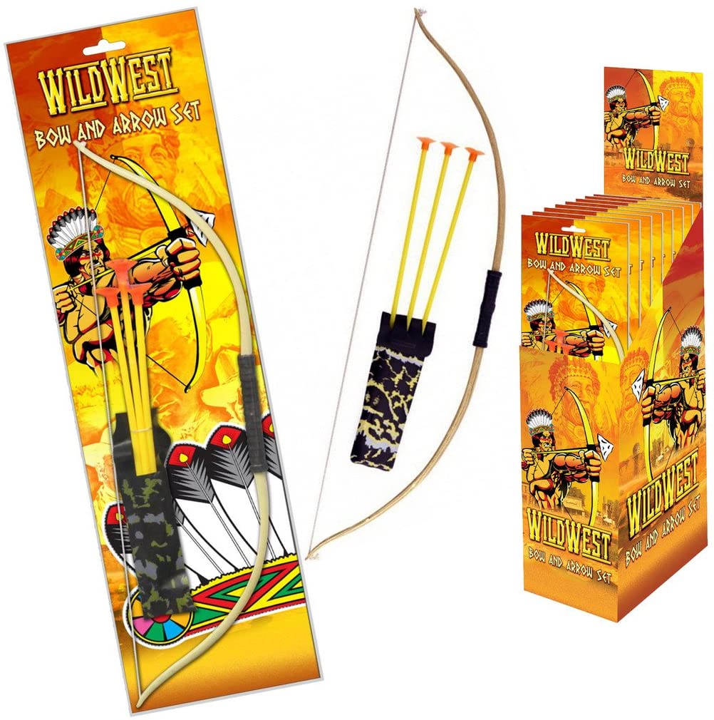 - Each Wild West Bow and Arrow Set comes with: kids plastic archery bow with handle; 3 arrows; an arrow case for conveniently storing your battle darts.
