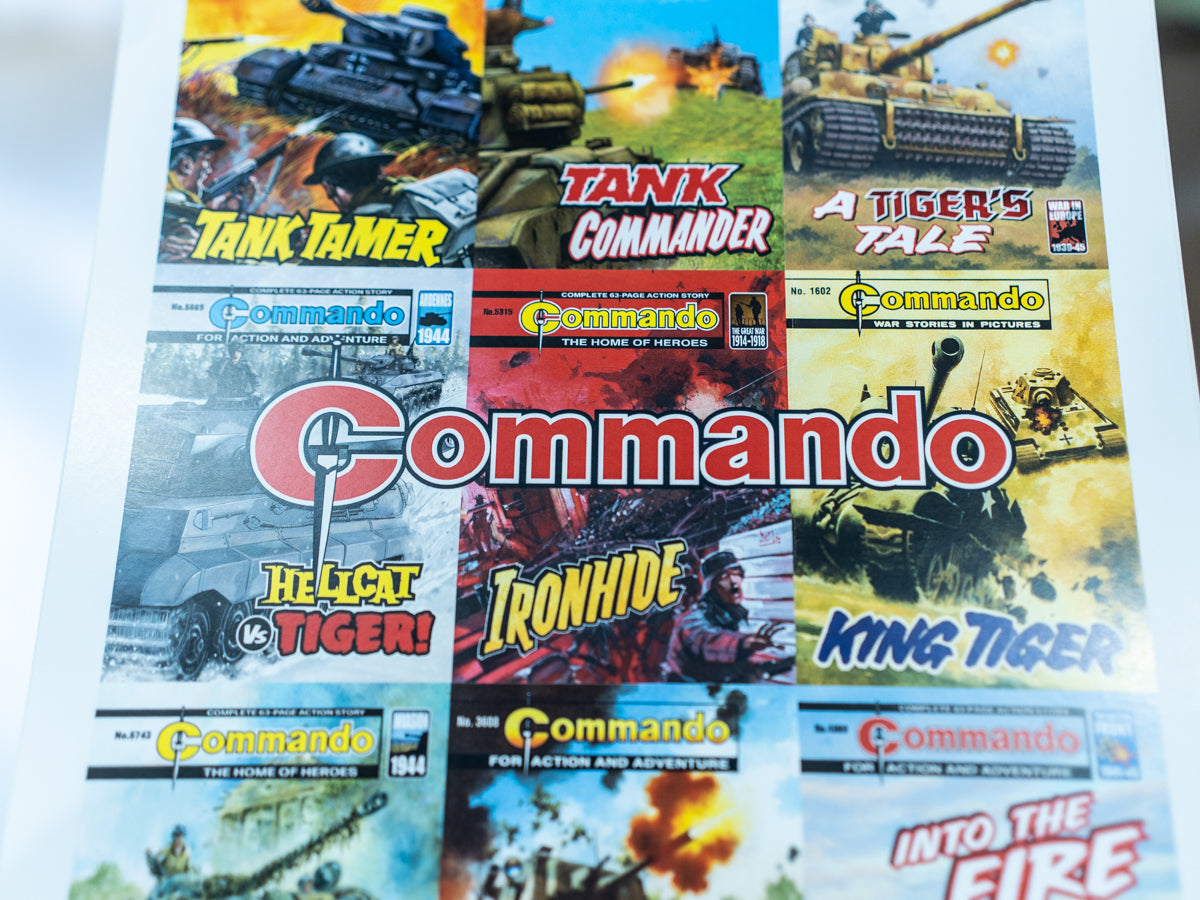 We've collaborated with Commando Comics to create this exclusive art print featuring nine Classic Commando Tank covers. The perfect accessory for any wall space!