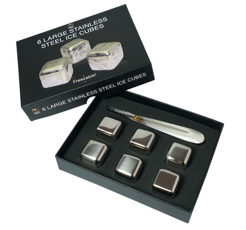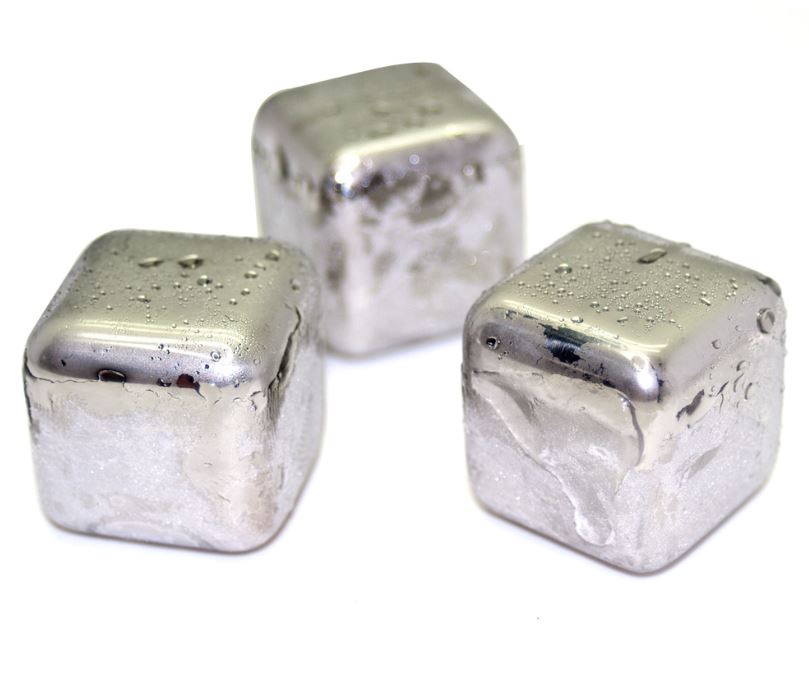 These stainless steel drink coolers will chill your drink without diluting. Each cube contains a non-toxic gel that freezes quickly. Quality steel leaves no taste and no leeching. Rinse and reuse your Rocks of Steel over and over again!