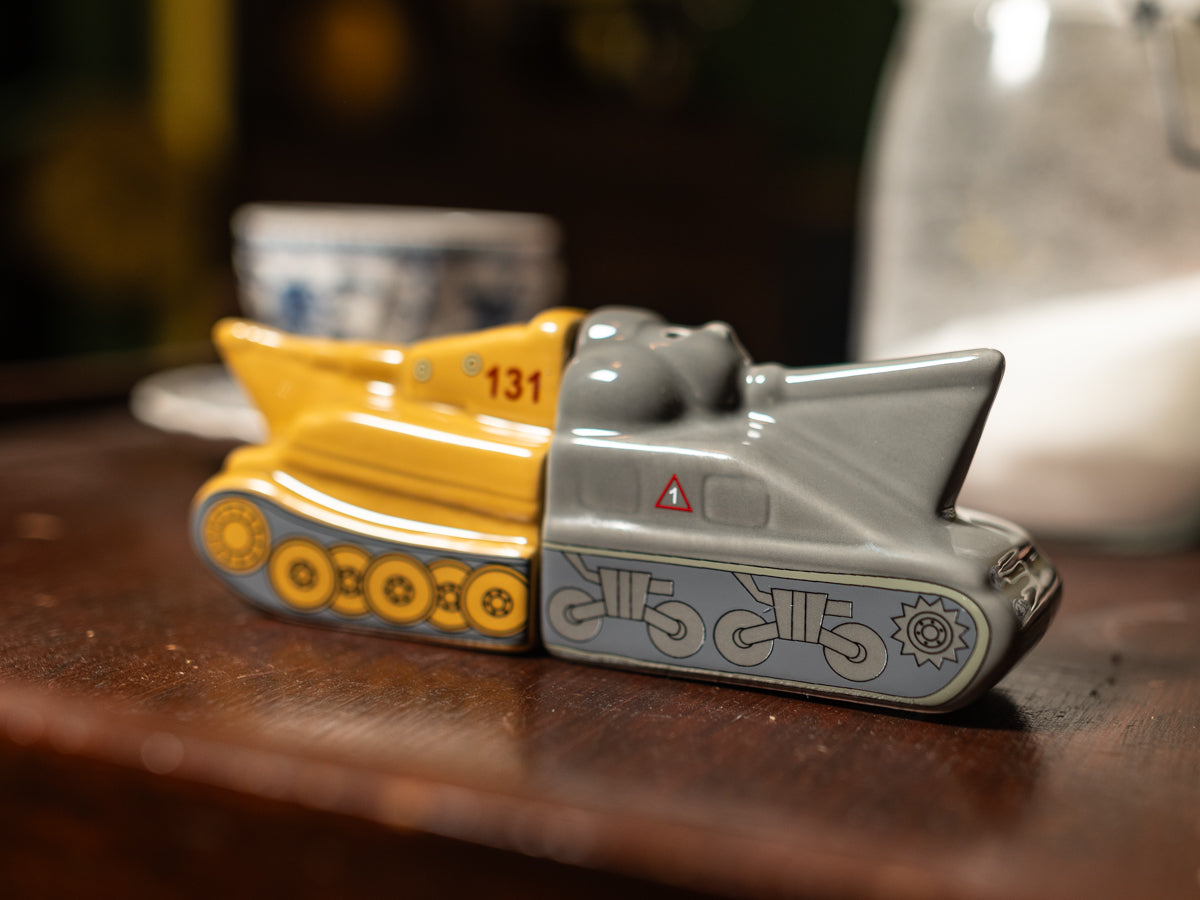 Battle it out at the dinner table with our ceramic Tiger 131 and Sherman salt and pepper pots.