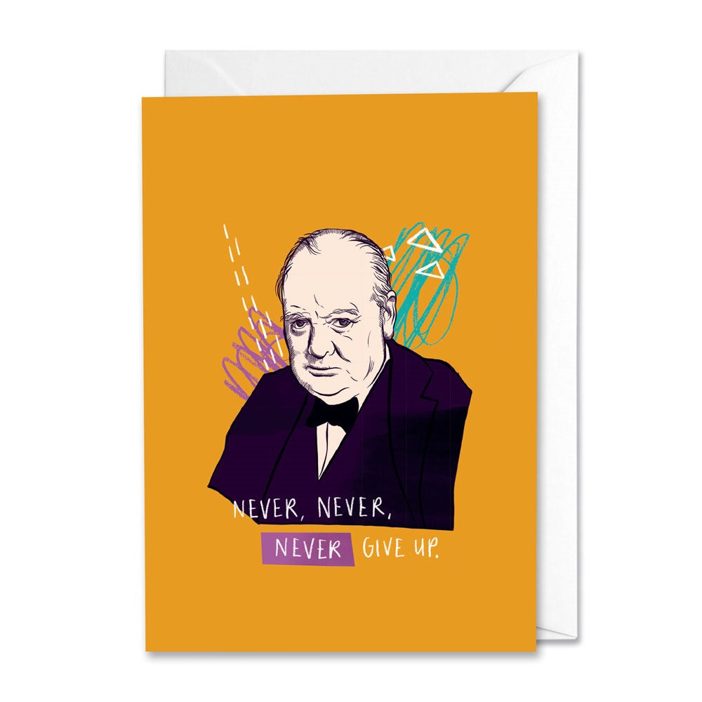 Celebrating trailblazers throughout history, this bold design features Winston Churchill, writer, painter and British Prime Minister during WWII. The Winston Churchill quote reads ‘Never, never, never give up.’
