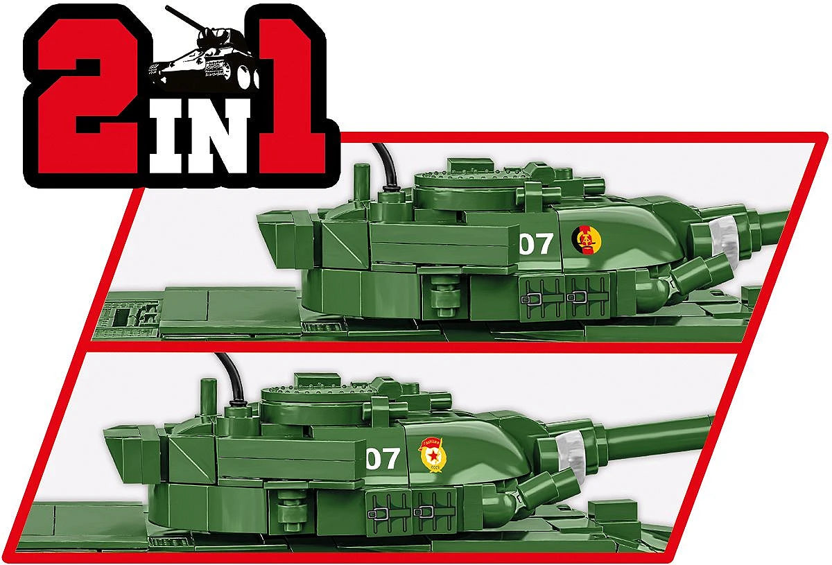 Using COBI construction blocks you can build a main battle tank from the times of the Warsaw Pact, when Europe was divided by the Iron Curtain! The T-72 M1 tank set includes a double set of markings for East Germany and the USSR. East Germany purchased over 500 tanks of this type from the USSR, Poland and Czechoslovakia. After German reunification in the 1990s, the tanks were withdrawn from service. In the USSR, the tank entered service in 1971. Thanks to numerous modifications the tank is still in use in modern Russia.