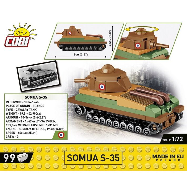 This model is perfect for a start to your adventure with COBI construction blocks. Somua S-35 is also an interesting model and display-piece for collectors. It takes up little space and can easily find its place on a desk at home, at work or on a bookshelf.