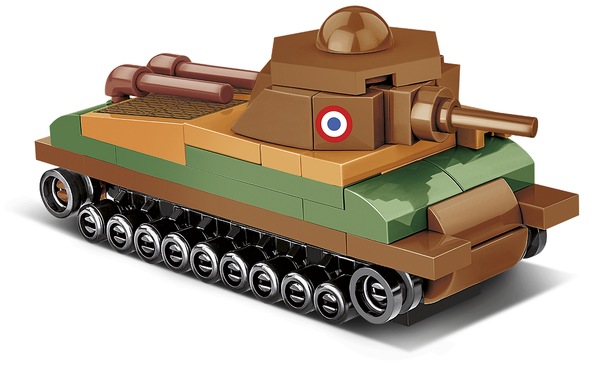 The mini model made of COBI construction blocks was designed in a scale of 1:72 and consists of 99 high-quality elements. When built the tank is 9cm long. Despite its compact size the model retains all the most important features of its historical inspiration! This vehicle cannot be confused with any other! There are prints with French markings on the sides of the turret. The ventilation grilles are also printed. The tank turret is also movable and can be rotated.