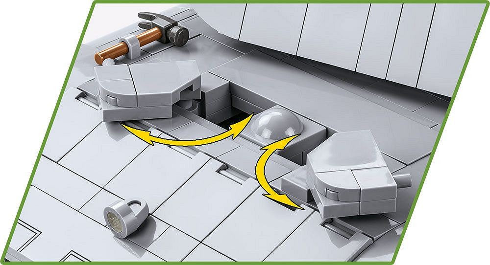 Additional functionalities include a rotating turret, movable cannon, access to hatches for the crew and working tracks. The set also includes a very interesting figure of a tanker with a print on the back. Such a huge model will provide many hours of exciting construction and will become a dominant exhibit in your collection! Build history, piece by piece, with COBI!