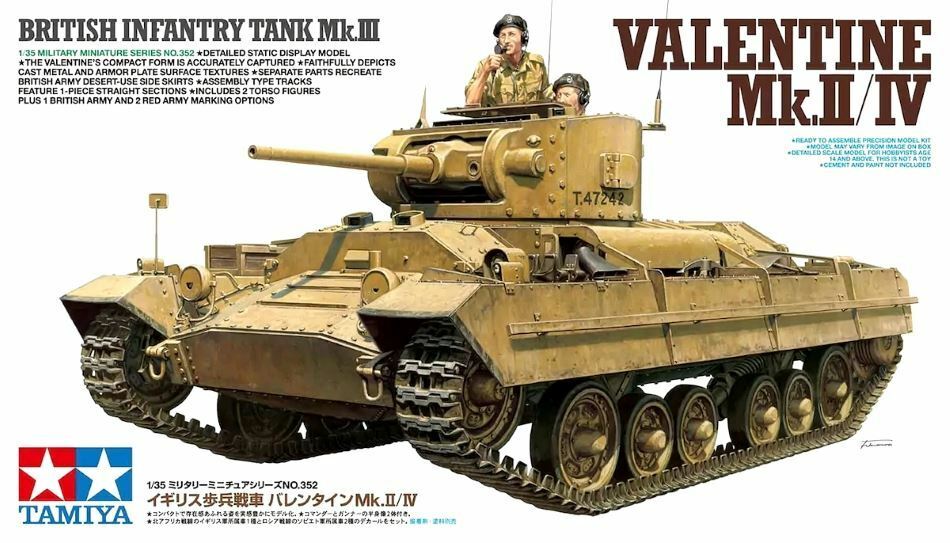 Recreate the British Infantry Tank Mk.III Valentine Mk.II/IV with a Tamiya 1/35 scale model kit.