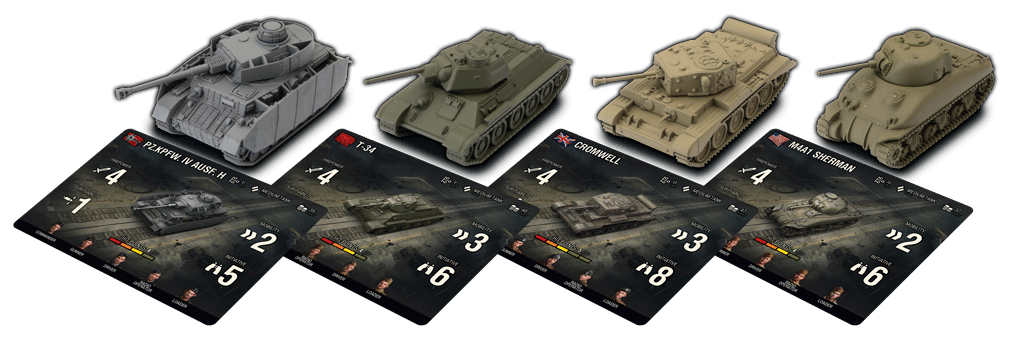 Each set comes with a ready built and painted miniature vehicle, 1 tank card and 5 upgrade cards.