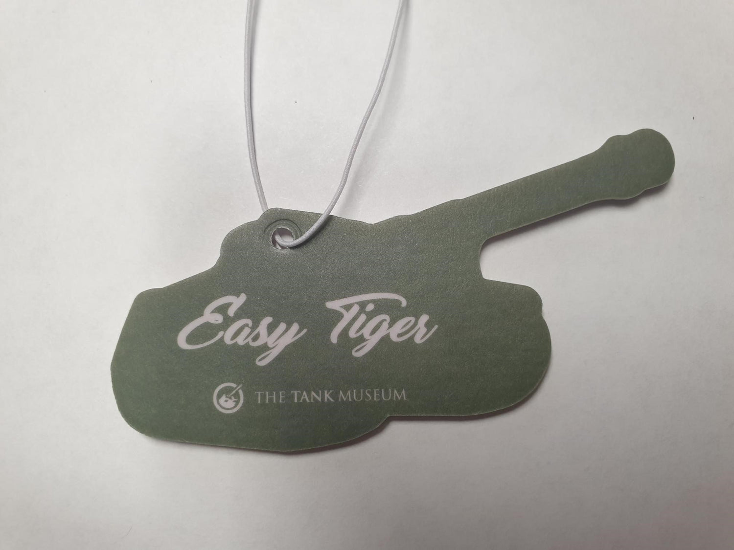 The Air freshener features the Tiger 131 tank picture on the front and wording "Easy Tiger" on the rear