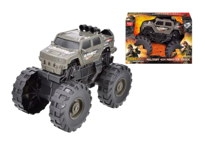 1:18 scale Military 4x4 monster truck with moveable parts.