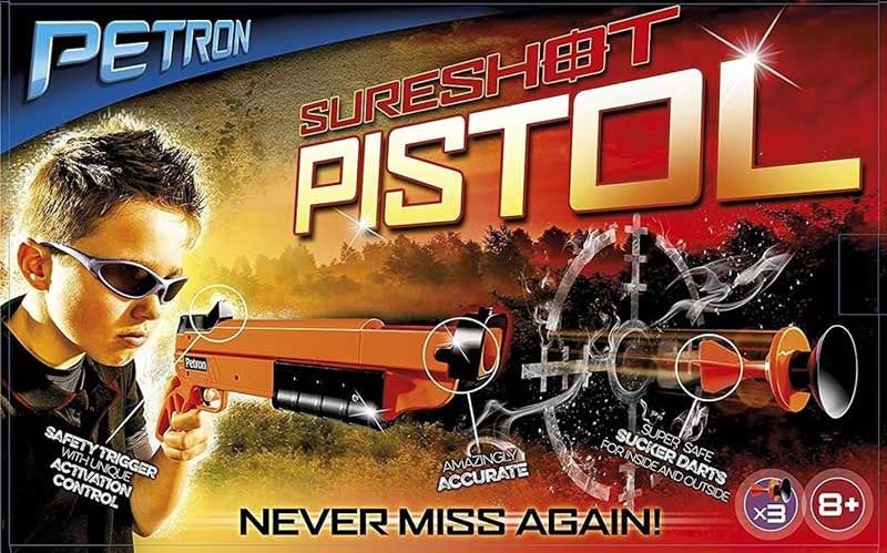 The Petron Sureshot Pistol shoots the super safe Sureshot sucker darts and it is ideal for ages 8 years and above.