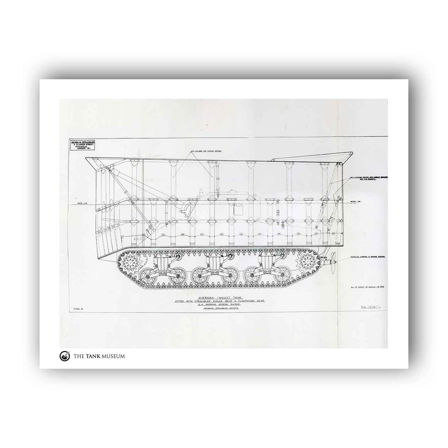 Blueprint print of M4A2 Sherman III DD Screen. All Tank Museum Posters are printed on high quality eco-friendly paper and are available in multiple sizes.