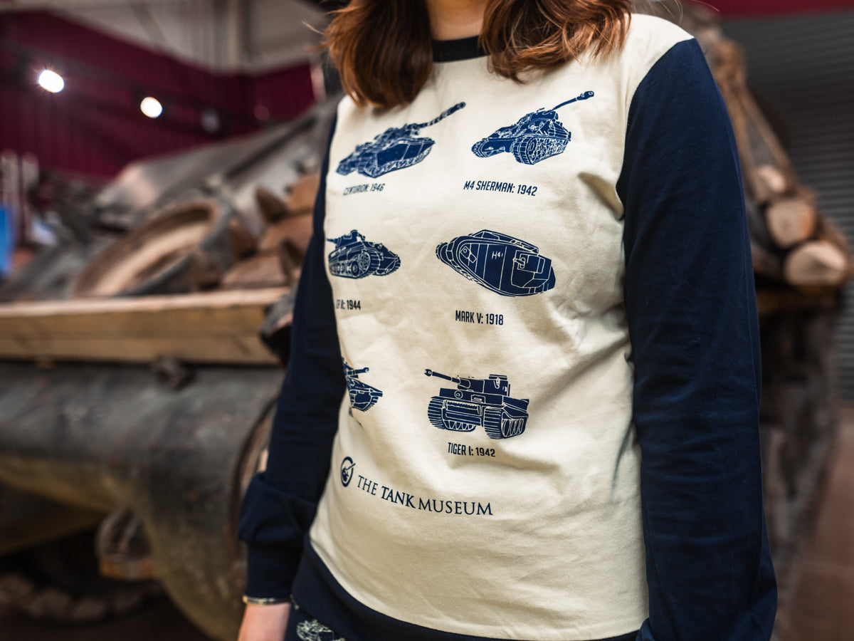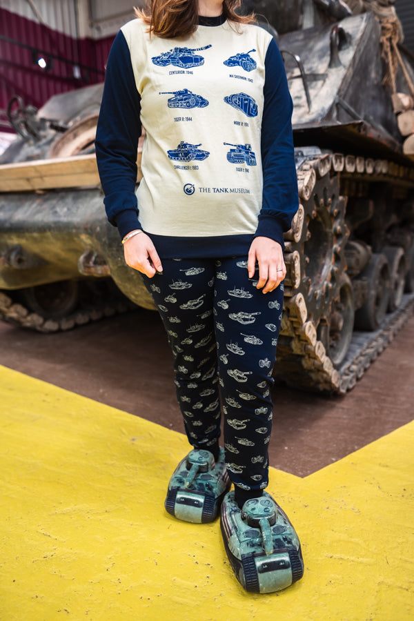 Get comfy with these bespoke unisex Tank Museum pyjamas, in a soft, cosy cotton. Featuring our top tanks, Centurion, Tiger II, M4 Sherman, Tiger I, Mark V, Challenger 1. Super soft with a good stretch.