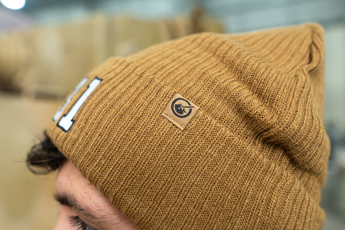Keep warm this winter with this Tiger Tank knitted hat in sand, with white '131' embroidery on the front, a Tank Museum logo tab, and an embroidered silhouette of the infamous tank on the back!