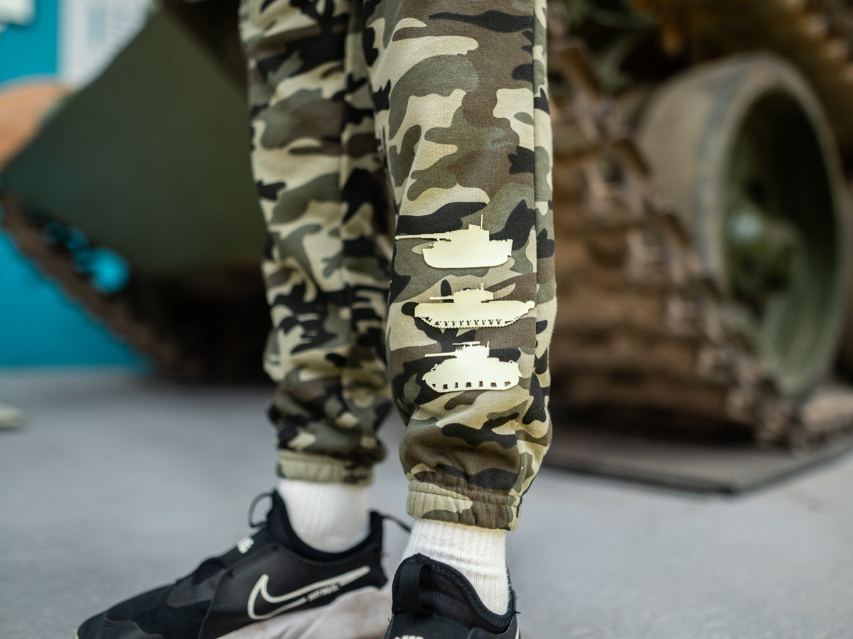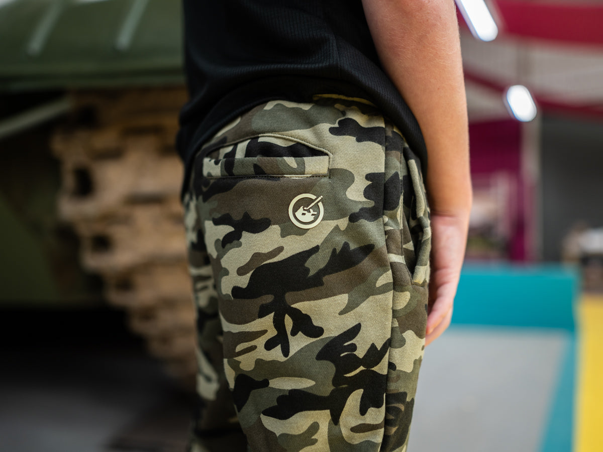 Complete your off-duty look with a pair of camouflage joggers! Featuring tanks on the leg and The Tank Museum logo on the back.