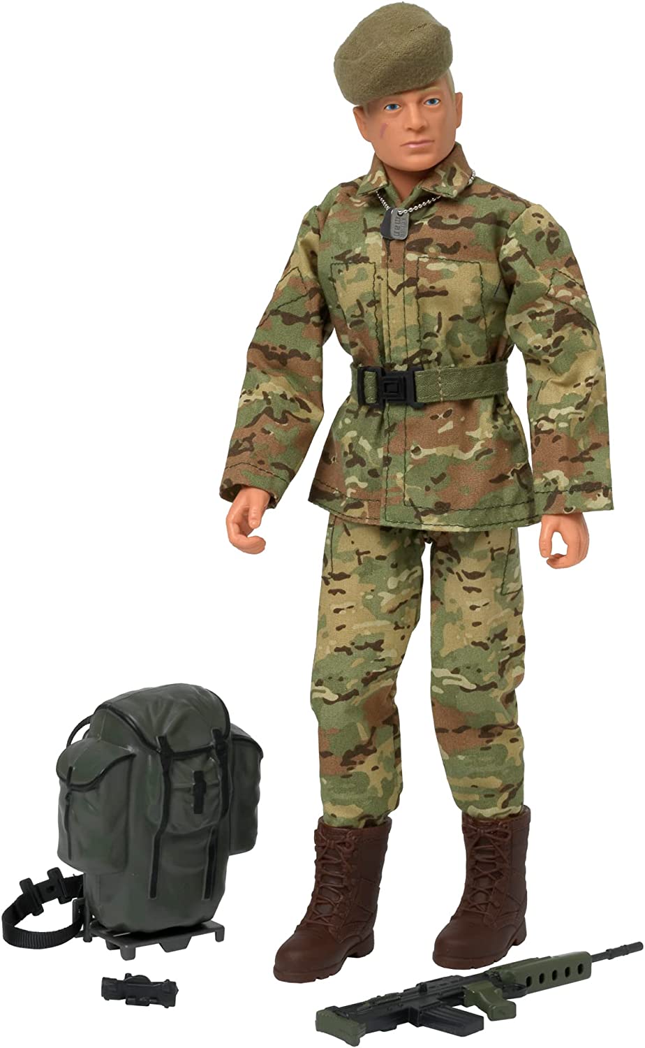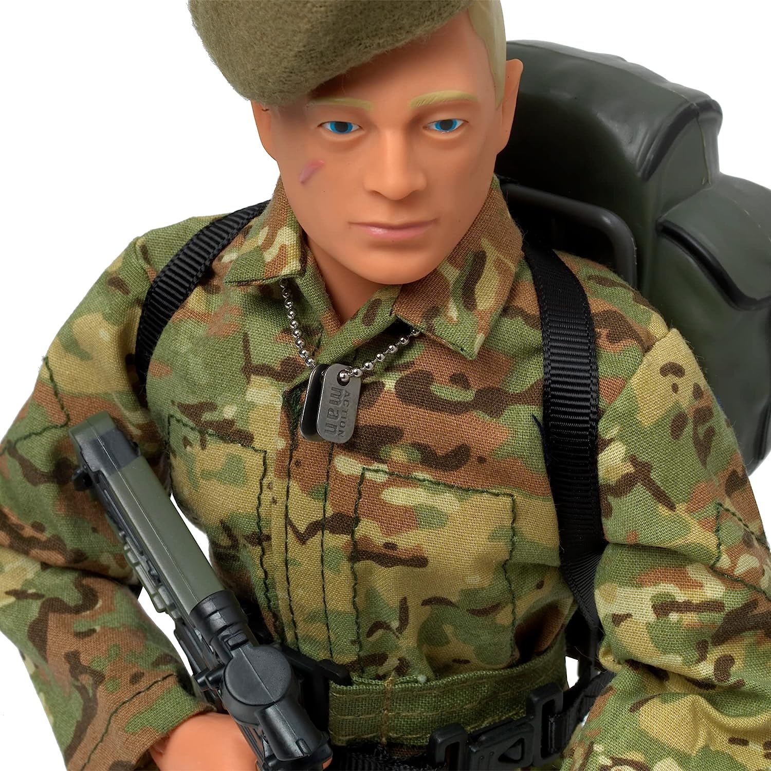 Ready for action! Our Action Solider is constantly ready for his next big adventure, with his full officer uniform he is always ready to take charge of his team! He is equipped at all times with MTP camouflage uniform equipped with an SA80 Rifle and backpack, as well as matching boots and beret for the distinctive Action Man look.