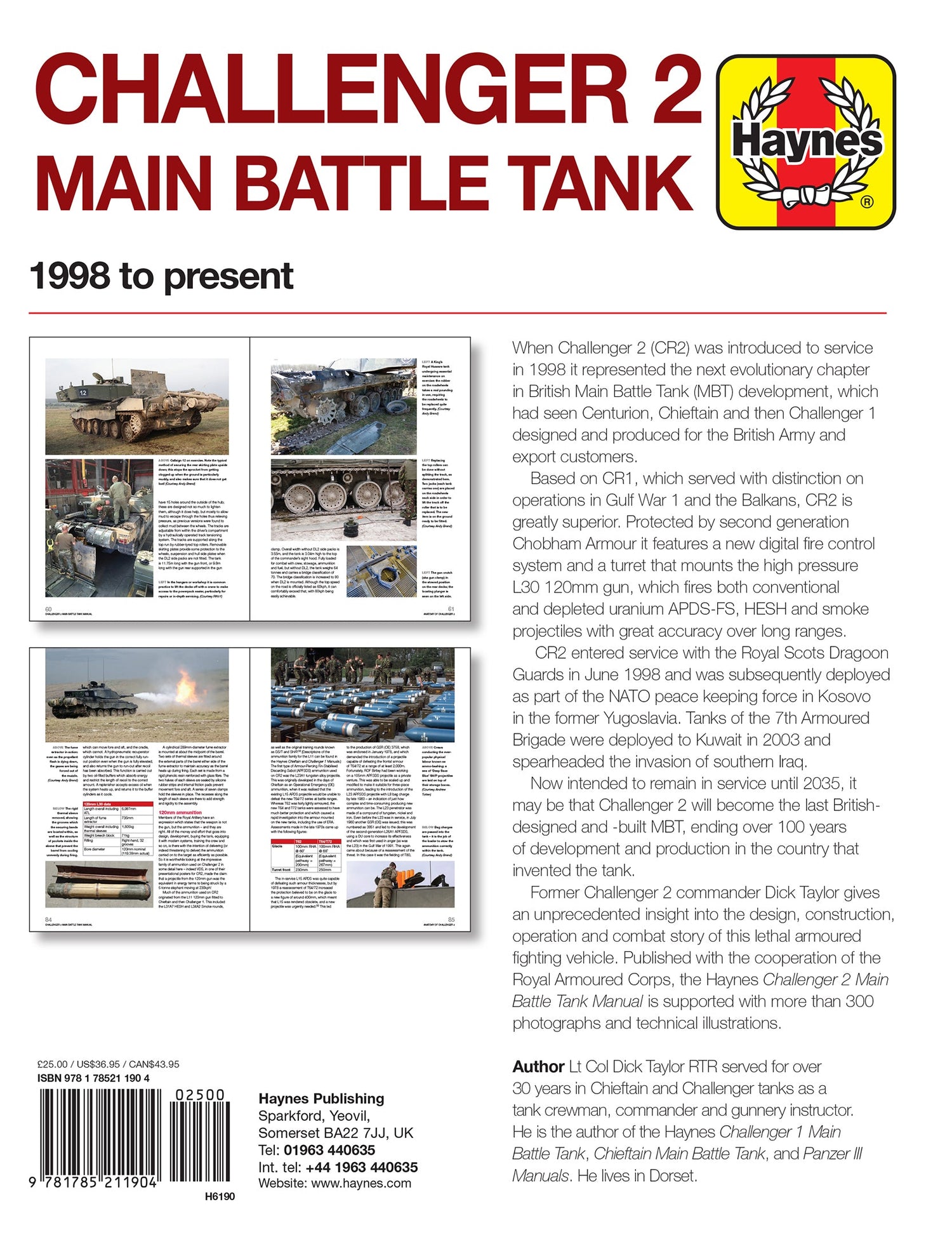 By Dick Taylor in association with the Royal Armoured Corps 2018 marks 20 years since Challenger 2 (CR2) was first introduced into service with the British Army and it is intended to remain active until 2035.  2018 marks 20 years since Challenger 2 (CR2) was first introduced into service with the British Army and it is intended to remain active until 2035. Haynes, in conjunction with the Royal Armoured Corps, lifts the lid on this lethal armoured fighting vehicle with a new book, Challenger 2 Main Battle Tank Owners' Workshop Manual.