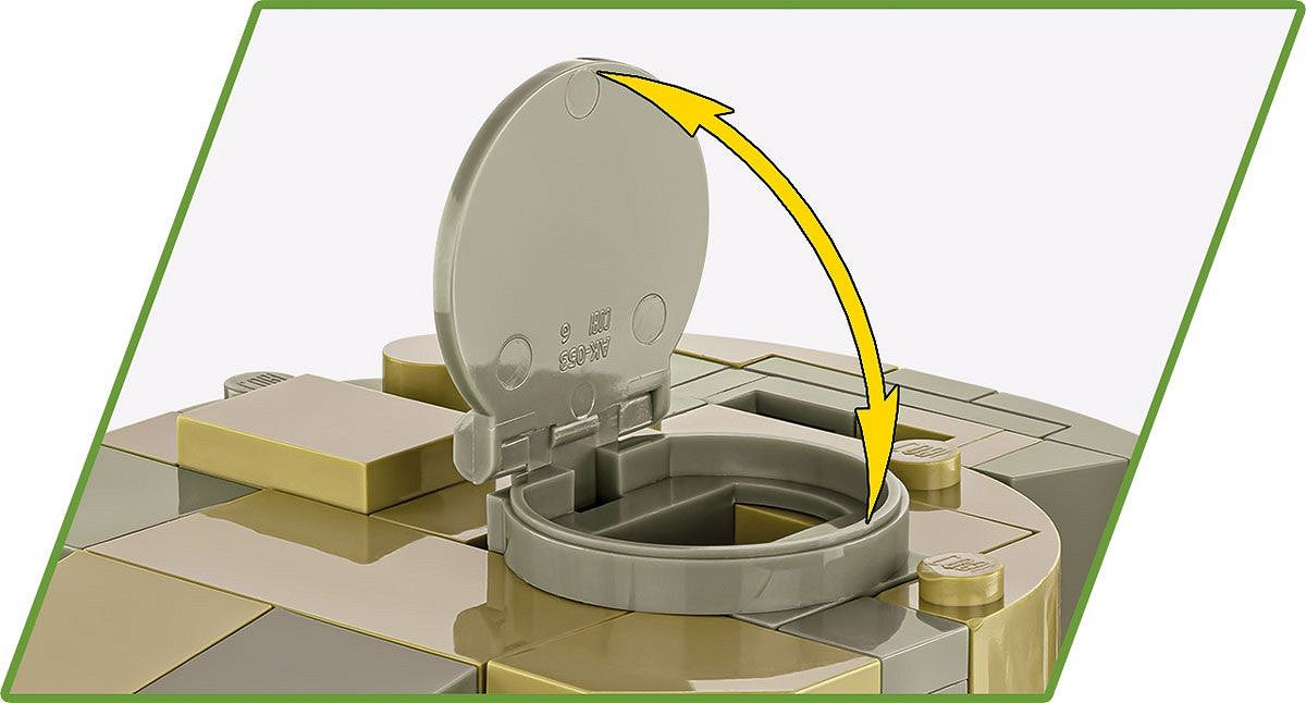The block Tiger 131 has been reproduced with attention to detail in the very popular 1:35 scale! It is worth emphasizing that this is the first time COBI has released the legendary Tiger 131 in this size! The model has movable elements like the turret and gun barrel as well as rotating wheels and tracks. The elaborate set consists of 898 elements and faithfully reflects the original shapes of its historical inspiration. Our powerful block tank has been covered with high-quality prints that do not rub off. The colors, which are close to the original, deserve special attention, making the model look dazzling! The set includes a mini model of the Maybach engine, which can be displayed next to the model or placed in the tank under the service flap. The model has movable wheels and caterpillar tracks consisting of many links. During play you can drive the tank and watch the working caterpillar traction! The hatches are opened and there is space under them for standard COBI figures. The figure depicts the tank commander in tropical uniform. The whole set is complemented by a white plate with the name of the tank and The Tank Museum logo printed on it! Build history, piece by piece, and complete your Panzer collection.