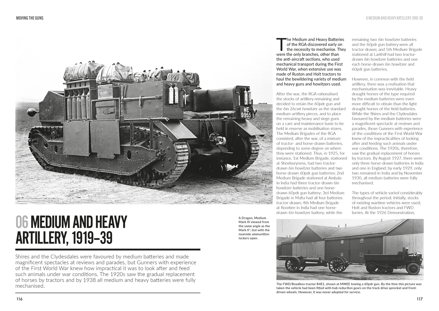 Authors David Fletcher and Philip Ventham have drawn on research material from the Royal Artillery Institution (originally at Woolwich), the Library of The Tank Museum and the UK National Archives to assemble a comprehensive history of this aspect of military transport.