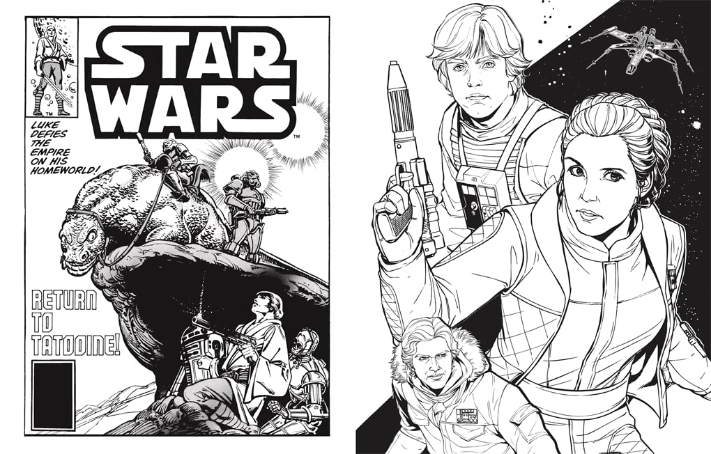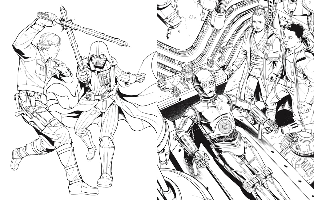From Ewoks on Endor to starships and stormtroopers, this colouring collection features comic covers, cartoon panels, detailed character art, intricate patterns and much more. Fans of all ages will enjoy reliving key moments from all Star Wars films, with illustrations from Star Wars: A New Hope through to Star Wars: The Rise of Skywalker. Add colour to iconic scenes such as the battle between Darth Vader and Obi-Wan Kenobi, Rey vs.